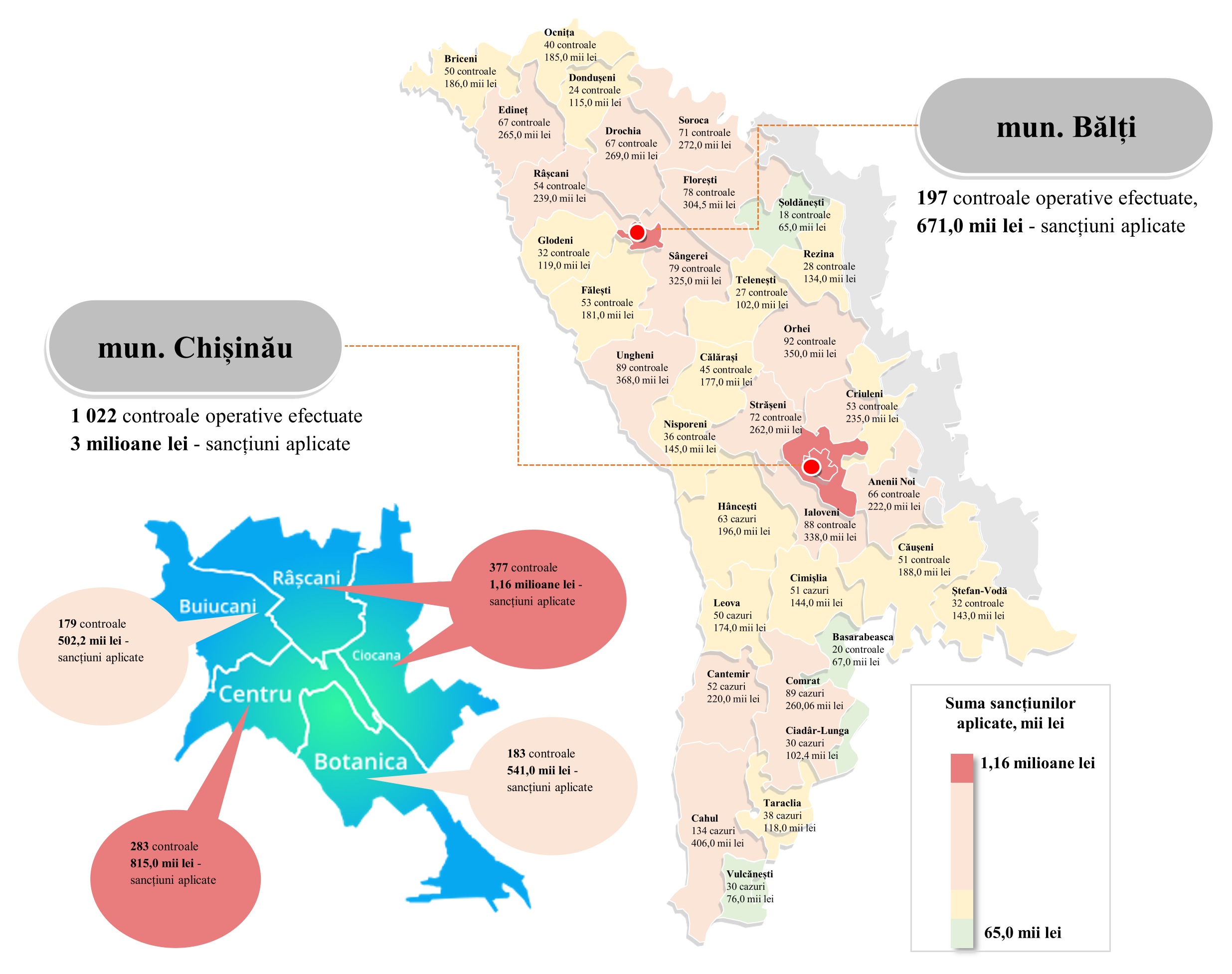 Din totalul controalelor operative efectuate, în 2 232 cazuri au fost stabilite încălcări, ceea ce reprezintă 72% din numărul acestora.